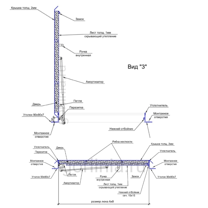 - внутренняя ручка для закрытия дверцы из нижнего помещения.
