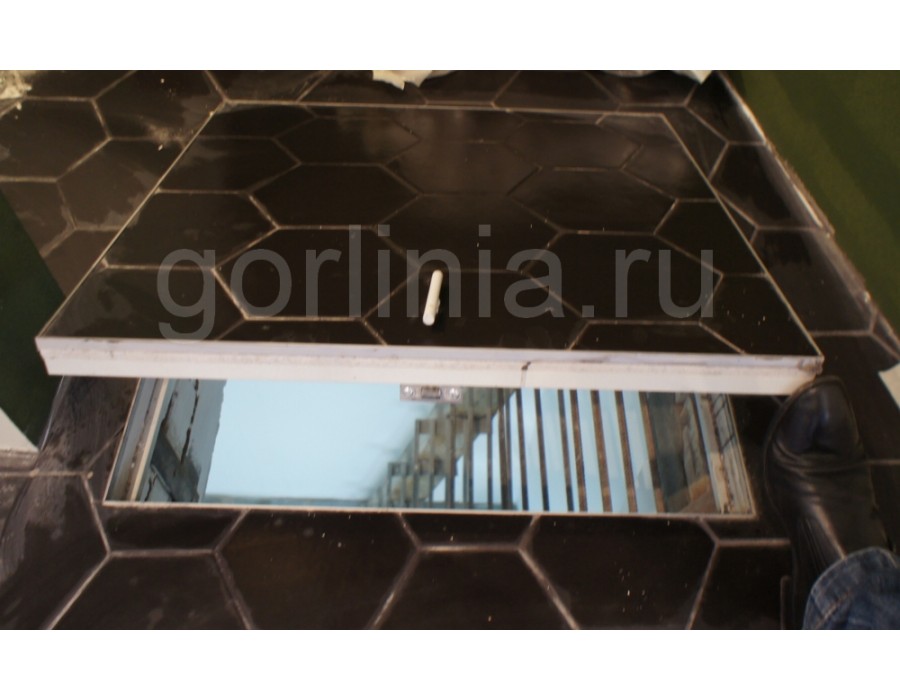Люк напольный под плитку с амортизаторами АМО из стальной трубы 30х20 и сортового уголка 40х40 толщиной стенки 4мм. Окрашен в камере полимерной порошковой эмалью. Прошел сушку в высокотемпературной камере. Монтируется внутри помещений. Изделие оснащено газовыми упорами, внутренними петлями и личинкой замка с язычком. Тип открывания демпферной петли: откидной. На каркас двери прикреплен лист ГВЛвл под плитку (ламинированную доску). Закажите прямую доставку по России с производства!