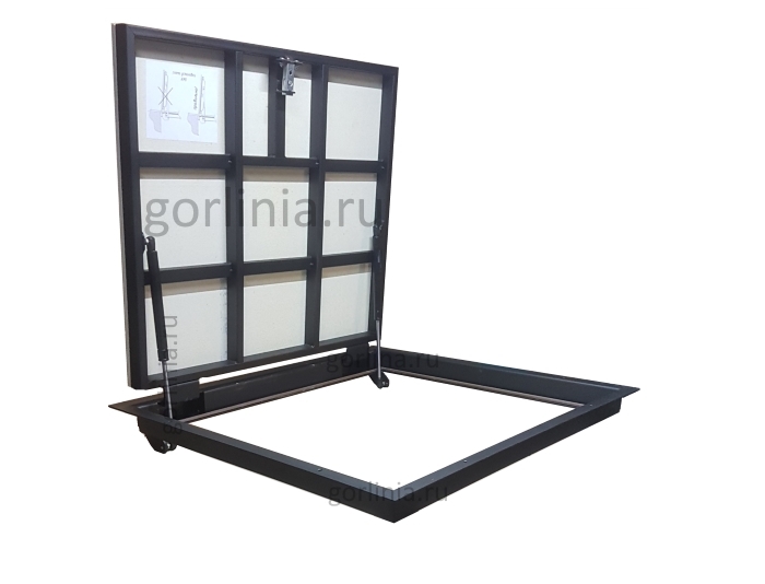Облегченная модель прямоугольного размера без щелей в полу со смещенными за ось открывания петлями через вырезанные в раме ниши. Легкая ходовая часть на амортизаторах и удобный монтаж с облицовкой крышки керамическим или ламинированным покрытием.