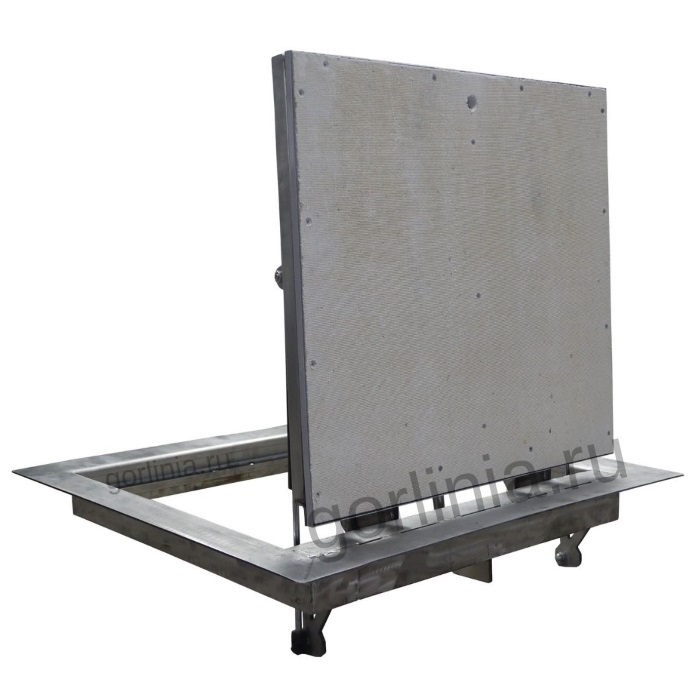 Вы ходите по закрытой крышке, как по обычному полу, обвязка полотна держит нагрузку до 200 кг на квадратный метр. Каркас опирается на трубу 15х15 по трем сторонам, на петли по четвертой.