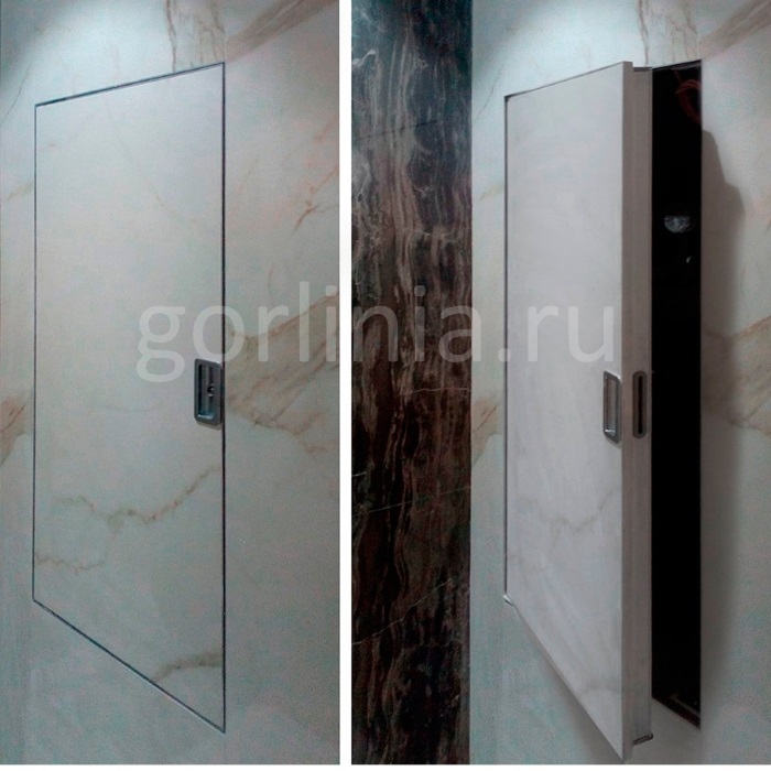 - без окантовки с открытыми торцами керамогранита, как у люков-невидимок.